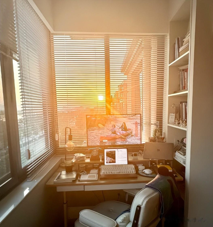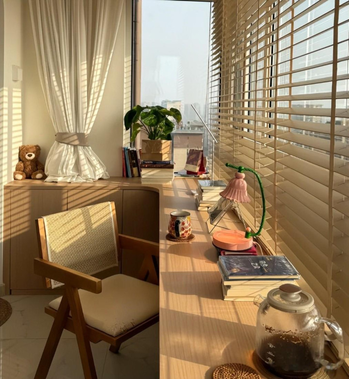 有的家庭认为阳台这个地方足够大,我打造个读书、办公区域很好用,不浪费!