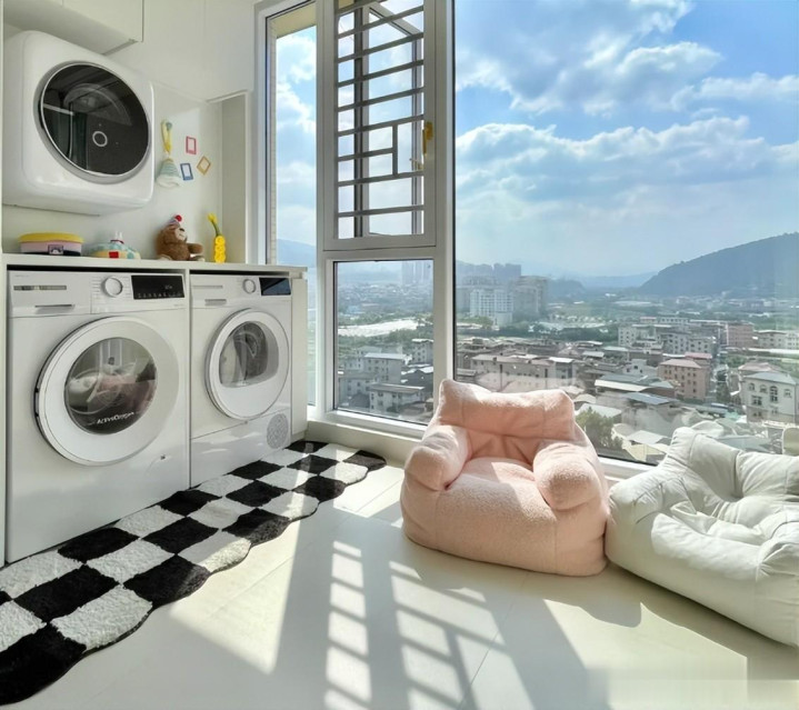 现在不一样了,有的家庭打造了洗衣区,有的还打造成了书房、小花园……