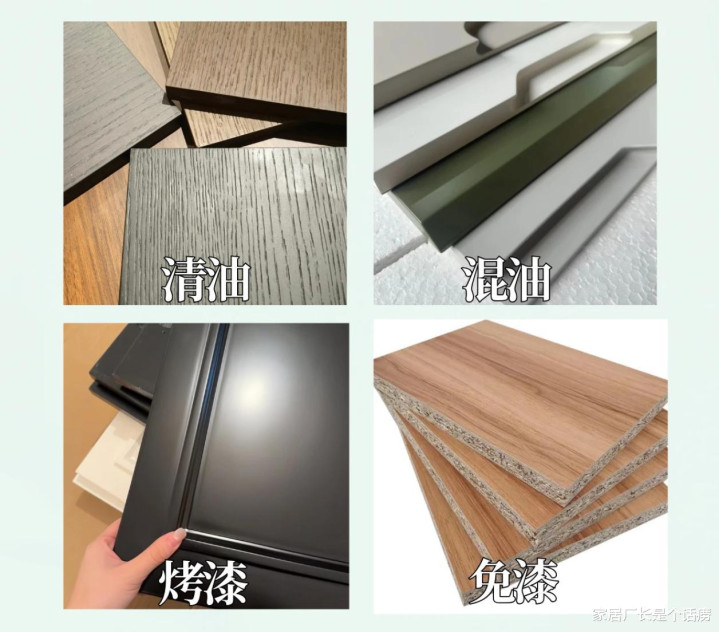 基本分为两类,油漆和免漆,油漆细分为清漆、混油和烤漆,免漆就是一体成形,不用额外做涂装。