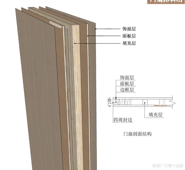 "复合",顾名思义由两种或两种以上材质构成的木门。