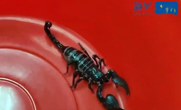 3、海关截获18厘米长活体帝王蝎近日,黄埔海关所属黄埔老港海关关员在对一批申报为“西非苏木”的货物实施现场查验时,在装载木材的集装箱内截获一只活体大型蝎子,测量长度为18厘米。经黄埔海关技术中心鉴定,该蝎子为帝王蝎,属于外来物种,该物种还被列入《濒危野生动植物种国际贸易公约》(CITES)附录Ⅱ。这也是黄埔海关首次截获该物种。(@海关发布)